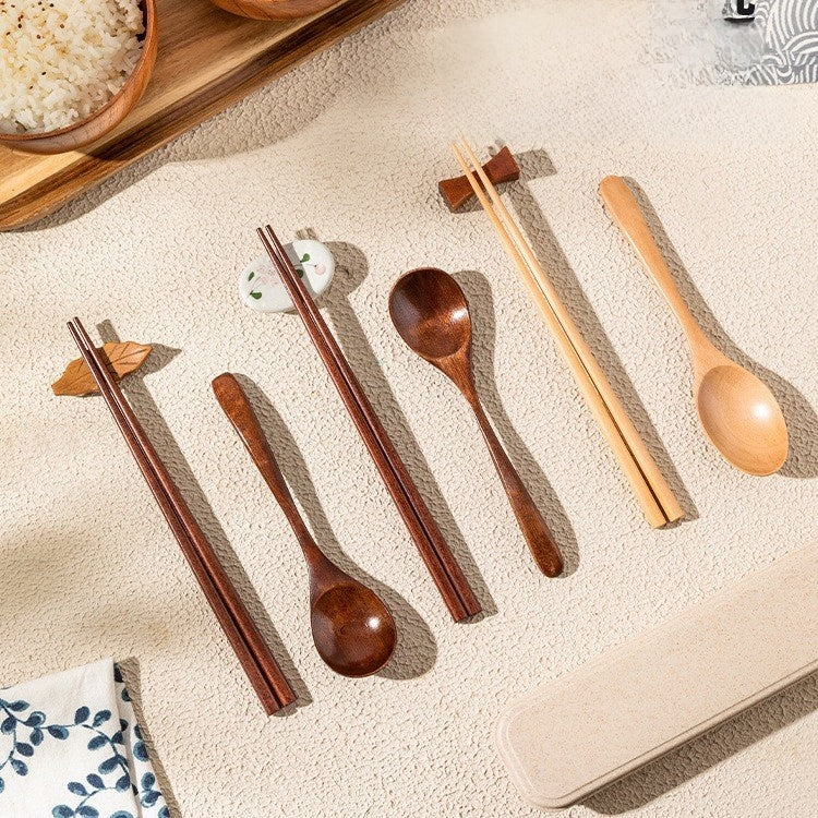 Premium Wooden Chopsticks & Spoon Set with Travel Case - Eco-Friendly Dining